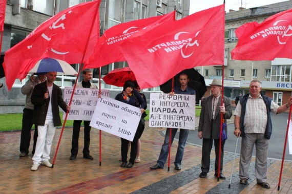 Близько 9 ранку Тігіпко зустрічають біля міськради Вінниці. При вході два десятки пікетувальників від місцевої комуністичної партії. В руках у них плакати: "Тігіпко обміняв народ на кредит МВФ", "Тігіпко і МВФ - вороги народу".