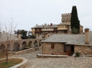 Весь Афон вкритий горами і трохи схожий на наші Карпати. Викладені грубим каменем дороги тільки біля порту і столиці. В основному монастирі сполучені грунтовками з крутими підйомами і поворотами. Місцеві їздять на джипах або бусах з чотирма ведучими колесами.