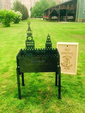 1400 грн коштує мангал для шашликів у вигляді московського Кремля. Продають в інтернет-магазині. Важить 14 кг. Ніжки й вежі можна зняти.