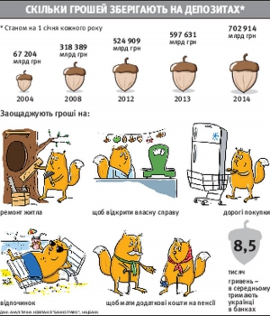 Банківський гривневий депозит перекриває інфляцію. Зараз інфляція приблизно 15 відсотків, а банки нараховують 20–22. Заощадження в гривнях найкраще зберігати у кризу в банку. Розділити, наприклад, між чотирма фінустановами. Ймовірність того, що з чотирьох банків збанкрутують три, дуже мала. Це вже має бути крах усієї системи. Решту грошей тримати вдома, на третину — купити доларів. Така схема дозволяє максимально убезпечитися від економічних потрясінь.