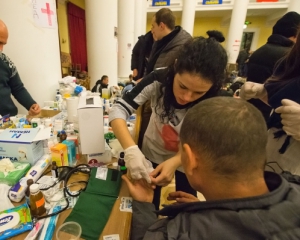 У вівторок вночі ми створили в Михайлівському медпункт - єдиний на той момент. До обіду нон-стоп приймали пацієнтів з Майдану. Прооперованих у профспілках на другий день мали перев'язати. Їх були сотні. Весь день розгортали мобільні пункти на місцях - для легших хворих або тих, хто швидко втрачав кров. Дуже багато було повідомлень про смерті.