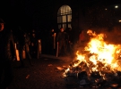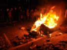 Біля райвідділу стоїть дев'ять розгромлених автівок. Серед них чорний "лексус". З одного боку вибиті вікна, вм'ятини від вогню. Міліціонери кажуть, він належить начальникові обласної міліції Олександрові Рудяку. Генерал напередодні заявив, що буде виконувати вказівки вищого керівництва. Поряд лежать пластикові пляшки. Кажуть, у приміщення та машини кидали "коктейлями Молотова".