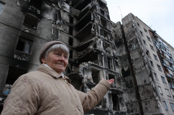 "Тут спершу стояв міліцейський пост, але недовго. Тепер ми самі чергуємо. Одного разу по балконах один такий заліз аж на п'ятий поверх. Хотів влізти у квартиру ,як його побачила бабця що там жила. Підняла крик, ми всі збіглись. Так його з рештіки і міліціонери зняли," - розповідає 55-річний мешканець Володимир Зубик, - "чий снаряд попав в будинок не знаю. Може дім би і не обвалився, але коли приїхали пожежні і почали гасити вогонь, то ополченці, що прибігли сюди почали погрожувати їм автоматами і вигнали їх звідси. Так і три дні горів будинок під їх охороною. А потім завалився."