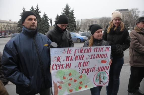 Акція закінчилася у кабінеті Аркадія Рибака. Він заявив мітингувальникам, що не знає хто і чому вирубує парк.