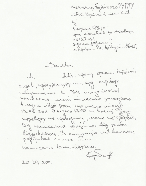 Наразі травмований написав заяву до міліції, у який він просить за фактом отримання травми руки перевірку не проводити. У заяві, зокрема, зазначено, що потерпілий 1981 року народження, а, отже, йому має бути 30 років, а не 20, як зазначили у міліції.