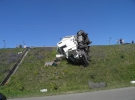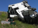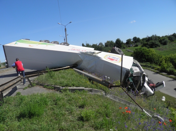 "Він виїхав на зустрічну смугу і з'їхав у кювет і перекинувся. Мабуть заснув чоловік і пасажир, - каже чоловік у світлій футболці. - Фура везла близько 20 тон курятини на Одесу. Зараз ось чекаємо, має під'їхати кран, аби підняти машину. Кажуть, що все застраховано. Не знаю чи це правда".
