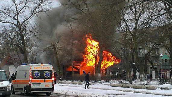 Як передає кореспондент інформагентства "Траса Е-95" з місця подій, в даний час заклад горить. Будівля істотно постраждала і відновленню, швидше за все, не підлягає.