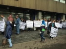 Кількасот активістів, обурених намірами обрати на посаду людей, причетних до розтрат майна профспілок, зібралися під "Туристом."