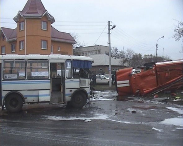 На розі вулиць Ільїна та Вербовецького пожежний ЗІЛ зіткнувся з маршрутним автобусом, що рухався в село Леськи Черкаського району. Внаслідок ДТП машину рятувальників перевернуло на бік, повідомив 36-річний Олег Ткаченко з головного управління МНС у Черкаській області.