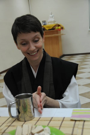 У монастирі маємо дві медитації зранку, сніданок між ними, тоді обід, трохи працюємо - і ще дві медитації.
