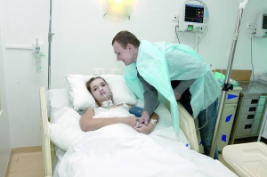 В Україну доставила санітарна авіація. Півтора місяця лікувалася в Олександрівській лікарні Києва. Вивели з коми. Юля відкрила очі, але вона майже, як рослина.