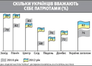 — Кожен по-своєму розуміє патріотизм. У когось його викликає мала батьківщина, де він народився, чи історія країни, видатні люди. І хоч патріотичний дух починають демонструвати дедалі більше людей, предметно він дрібніє. Менше пишаються національними символами, державністю, громадянством, національністю. Натомість більше — рідною природою, працьовитістю народу тощо.