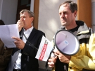 О 12.00 приносять пластиковий білий стіл, на який кладуть стос звернень та ручки із логотипом Об'єднаної опозиції. Люди починають штовхатись, щоб встигнути підписати.