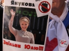 Люди починають збиратися біля будівлі суду вже о 10.00. Через тридцять хвилин вся вулиця Московська майорить прапорами Об'єднаної опозиції "Батьківщина". В акції протесту беруть участь дві сотні людей. Тримають також транспаранти із малюнками мавп та написом "Правосуддя в Україні" та репродукцію картини фламандського художника, на якій з судді заживо здирають шкіру за прийняття незаконного рішення. Скандують "Банду - геть", "Юлі - волю", "Олексєєнко - ганьба".