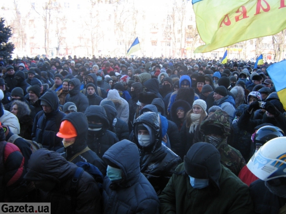 О 12.00 натовп збирається біля обласної адміністрації по вулиці Жовтневій. Напередодні мітингувальники поставили губернатору ультиматум: за добу він має написати заяву на звільнення та вийти з Партії Регіонів.