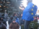 Майданцівці облаштовують нічліг. Між собою говорять, чули в Полтаву з Харкова їдуть кілька автобусів "Беркуту", ніби вночі планується зачистка активістів із приміщення обласної адміністрації.