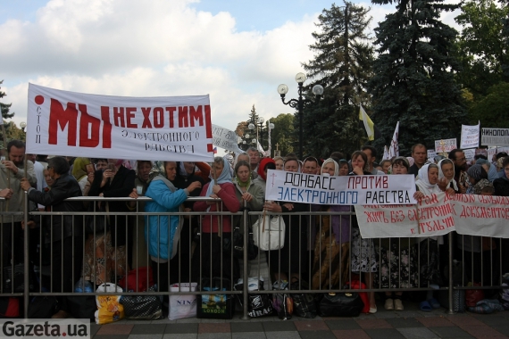 У четвер біля будівлі Верховної Ради близько 1500 віруючих протестували проти введення в Україні електронних паспортів та ID-картки.