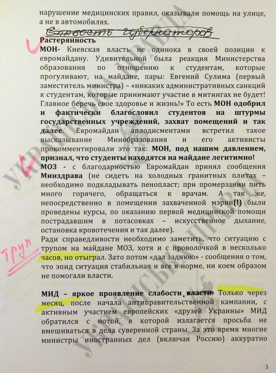 Видання демонструє дві аналітичні записки, в яких йде мова про дії різних органів влади на нещодавні події і пропонується варіант пошуку винних у масових акціях протесту.