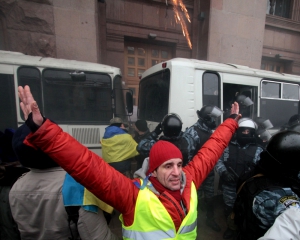 "Маємо національно-визвольну боротьбу, повстання. Якщо Янукович продовжуватиме діяти в такому ж стилі, це закінчиться Коліївщиною (селянсько-козацьке повстання на Правобережній Україні 1768 року проти шляхетської Польщі. -ред). 11 грудня я злякався за "Беркут" під держадміністрацією. Люди були готові їх рвати. Для них спецназ - це Янукович, Захарченко. У "Беркуті" є більш-менш адекватні люди. Бачив у їхніх очах розгубленість. Вони морально похитнулися. Почали розуміти: робиться щось не те. Якщо раніше чули від них мати, крики: "На колени, мразь!", то зараз - ні. Є там і дикарі. Від них страшенно смердить. У вівторок розмовляв із майором-"беркутівцем". Він каже: "Я же вижу по людям, их не остановишь". Я відповів: "Вместо того, чтобы бандитов ловить, ты какую неделю уже здесь в автобусах воняешь, не досыпаешь? Заради кого? Хряка межигірського, який сидить і сере від страху на своєму золотому унітазі?" - заявив Шкіряк.
