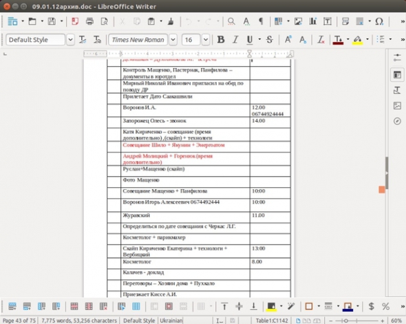 Перед вами - розклад справ Артема Пшонки з його особистого архіву. Між відмітками про наради, обіди і відвідування косметолога можна побачити запис "Прилітає Дато Саакашвілі".