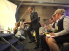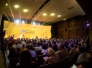 Зі сцени присутнім показують відео. На ньому українці з різних регіонів України висловлюють думки про ситуацію в країні, війну. На сцену виходить лідер партії 53-річний Сергій Тігіпко. Всі аплодують.