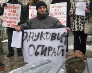 "Оскільки ми — громадські активісти, землю не дерибанимо, нам треба харчуватися у польових умовах — різати ковбасу, хліб. Це кухонний побутовий ніж. І, до речі, це не міліція у мене його вилучила, а я його здав сам охороні. Думав зробити це ще в гардеробі, але там металодетекторів не було. Тому віддав лише тут, прямо в руки."