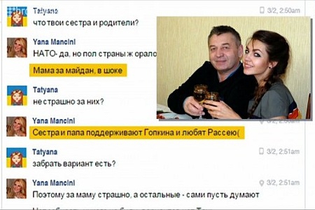 Зі скріншотів переписки стає зрозуміло, що родина Кошелєвих не була єдиною у своїй оцінці Майдану та своїй любові до України. Зокрема, Яна переживає за свою маму, яка підтримує Майдан. А от її батько та сестра, судячи з дописів, підтримували тодішнього губернатора Харківщини Михайла Добкіна та Росію.
