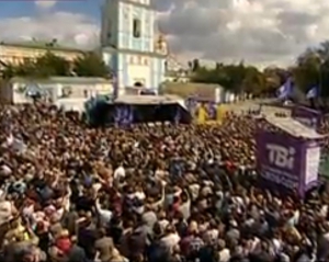На Михайлівській площі встановили невелику сцену та звукопідсилюючу апаратуру. Наразі на сцені виступає відомий українськай гурт "Тартак". На цей момент на мітинг зібралося півтисячі людей. Деякі з них тримають прапори "ТВі — останній рубіж свободи". Також молоді люди тримають плакати з написами "Я люблю ТВі".