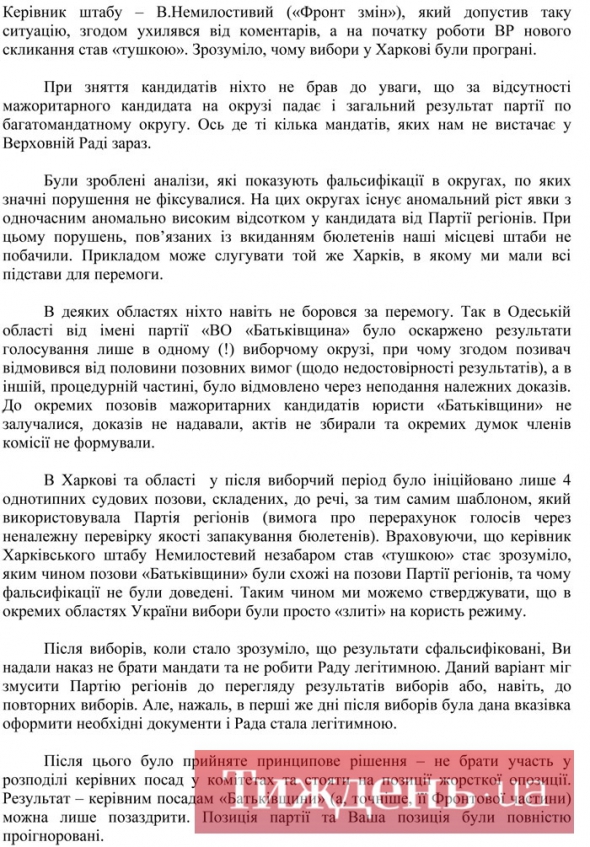 Публікуємо повний текст листа, який має бути переданий Тимошенко уже завтра.