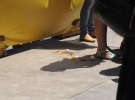 Савченко ознайомилася з облаштуванням "Антитруханівського майдану" і почала зі сцени відповідати на питання людей. У цей час двоє чоловіків кинули в неї яйця, але промахнулися.
