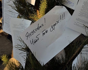 На кількох ксерокопіях написано "Янукович, ти зрадив свій народ!" і "Янукович! Щоб ти здох!".