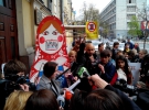"Ми знаємо вже кілька випадків з тим що росіяни маскують свої товари під українські. Є прецеденти з чаєм та наприклад "снікерсами"(шоколадні батончики — Gazeta.ua). Останні вироблені в російському Нижньому Новгороді, а продаються під штрих-кодами Великої Британії та України. Ми вважаємо своїм обов'язком попередити, що у ситуації, коли частина території нашої держави окупована росіянами, ми не маємо права допустити, щоб у нас продавались їх товари. Сюди прийшли, щоб закликати керівництво асоціації не присвоювати російським товарам українські штрих-коди", - Любов Галан, організатор перформенсу.