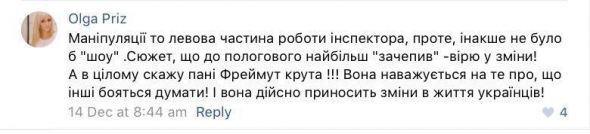 Ольга Фреймут після перевірки Черкас поставила місту 6 балів з 10. Програма вийшла в ефір 13 грудня. Найбільшою проблемою виявилася перевірка Черкаського міського пологового будинку.