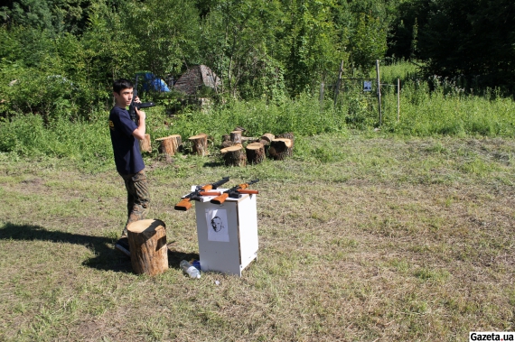 На пеньку лежить портрет Володимира Путіна. Саме в нього стріляють в тирі. Трохи далі, біля лісу проходять зустрічі, там же люди мають змогу набрати води. "Даааааай!" – дівчинка просить у батька іграшкову зірку на паличці. "Буде з тебе рок-співачка. А не треба казати "Будь-ласка?!" – батько вчить дитину ввічливості.