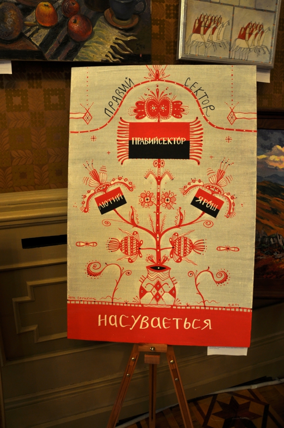 30 липня у Львові у Палаці Сапіги, вул. Коперника, 40а відкрили виставку картин відомих художників. Ці роботи будуть продані на благодійному аукціоні "Митці – воїнам" на потреби Національної гвардії. Аукціон розпочнеться 1 серпня, о 17:00.