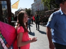 Активістка, Ярина Волошин, видершись на горбочок біля підніжжя пам'ятника зачитала в мегафон вимоги протестувальників до обласної влади : оприлюднити вартість природного газу, який видобувають в Україні та привести тарифи на комунальні послуги у відповідність до зарплат українців.