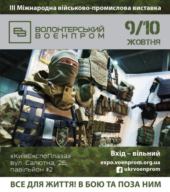 9 та 10 жовтня 2015 року у ВЦ "КиївЕкспоПлаза" відбудеться ІІІ Міжнародна військово-промислова виставка "Волонтерський воєнпром".