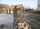 Андрій встановив імпровізоване пекло із цегли. Нагору поставив старі ще радянські залізні ящики з-під молока. На них – ключі. На ящиках – глиняна кераміка.