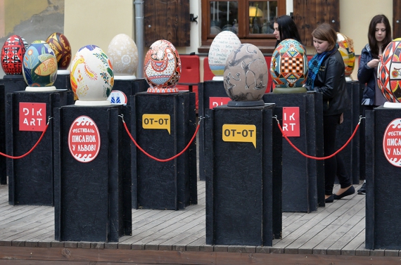 У рамках відзначення Великодня у Львові, на площі біля Домініканського собору, просто неба запрацювала Галерея мистецьких писанок, де представлено близько півсотні півметрових авторських робіт.