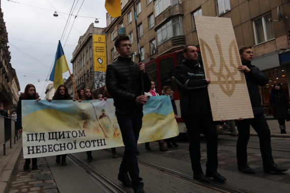 19 лютого тисячі львівських студентів взяли участь ході скорботи за загиблими учасниками Революції Гідності. Колона молоді і викладачів львівських вишів пройшла від національного університету ім. Івана Франка до пам'ятника Тарасу Шевченку. Попереду несли щит, складений із 1 500 маленьких "щитів", що символізували захист борців за честь і справедливість. До ходи також приєдналися учасники Революції Гідності, які були свідками трагічних подій лютого 2014 року.