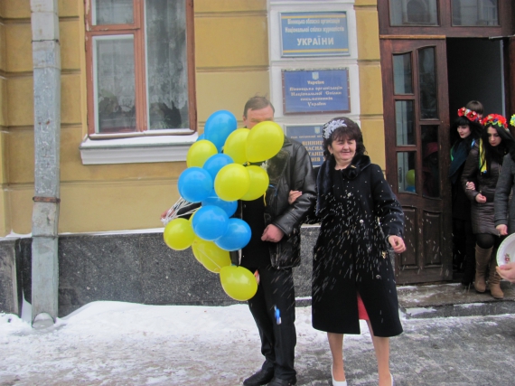 Після застілля Тетяна кидає весільного букета неодруженим дівчатам. А потім на площі Героїв небесної сотні пара разом із гостями відпускає у небо півсотні жовтих та синіх повітряних кульок.