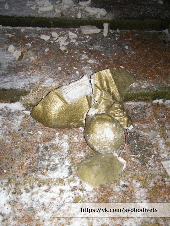 "Сильний вітер подув із заходу і звалив останнього Леніна, – коментує подію активіст місцевого осередку партії "Свобода" Олександр Лущан. – Скульптура розвалилася навпіл і відновленню не підлягає".