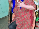 — Сьогодні доїла кашу. Раз на тиждень родичі приносять, — плаче Тетяна Ісаївна. — Нашо мені така мука на старість? Я порізана, шия опухла, ковтати не можу, — розв'язує хустку.