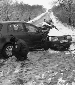 Удень 26 грудня біля села Бубнівка Гайсинського району Вінниччини зіткнулися двоє легковиків. Білу "ладу-дев'ятку" розвернуло на слизькій дорозі, понесло на зустрічну смугу, в її правий бік в'їхав "Фольксваґен Ґольф".