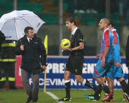 Сильна злива стала причиною спочатку зупинки, а потім скасування матчу чемпіонату Італії з футболу між "Катанією" і "Ромою".