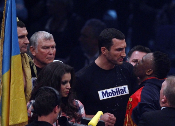 Британець перед самим початком поєдинку випустив з рота струмінь спеціально набраної води прямо в обличчя Кличко-молодшому. Володимир стоїчно стерпів, не піддавшись на провокацію і надавши можливість старшому братові під час бою відповісти британцеві, який зарвався.