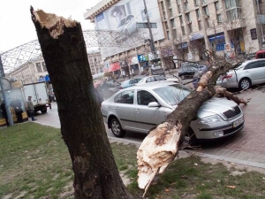 У Києві 28 листопада вдень у центрі біля будинку на вул. Хрещатик, 7/11 упало дерево. Пошкодило три автомобілі. У "Шкоди Октавії" розбиті капот і лобове скло, в "Тойоти Кемрі" — багажник та заднє вікно. Ці автівки придавило стовбуром. Іще одну "Шкоду Октавію" зачепило гілками. Комунальники розрізали дерево і вивезли трактором. Власники авто викликали страховиків.