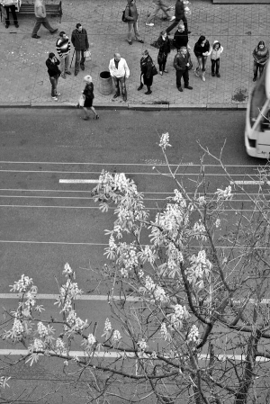 За її вікнами, у центрі на вул. Руській, наприкінці вересня зацвіли каштани. Суцвіття рясно розпустилися на верхніх гілках кількох дерев. Поряд виросло молоде листя.