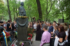 У понеділок на 98-му річницю смерті Лесі Українки в Києві на Байковому кладовищі відзначали день пам'яті письменниці. Відкрили відреставрований постамент могили, з якого торік вкрали бронзову гірлянду з лавра та квітів.