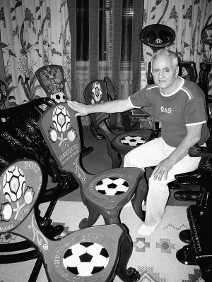 Микола Христич робив футбольний гарнітур майже за два роки. Усі спортивні крісла легкі й швидко розбираються. Вони оброблені найдорожчими фінськими та шведськими лаками й фарбами.